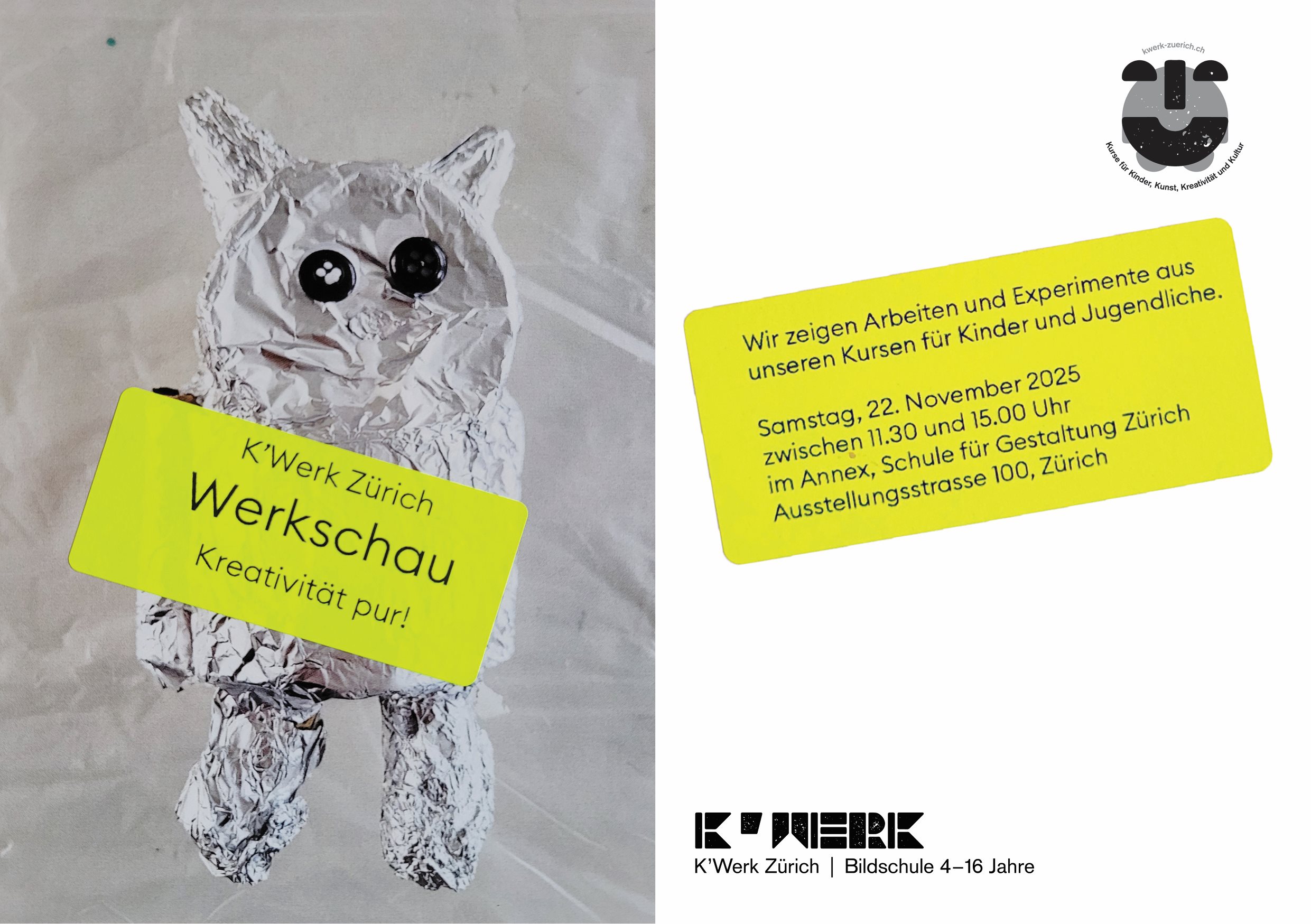 Im Rahmen des Tages der offenen Werkstätten der Schule für Gestaltung zeigen wir Arbeiten und Experimente aus unseren aktuellen Kursen für Kinder und Jugendliche. Wir freuen uns sehr über diese Möglichkeit.