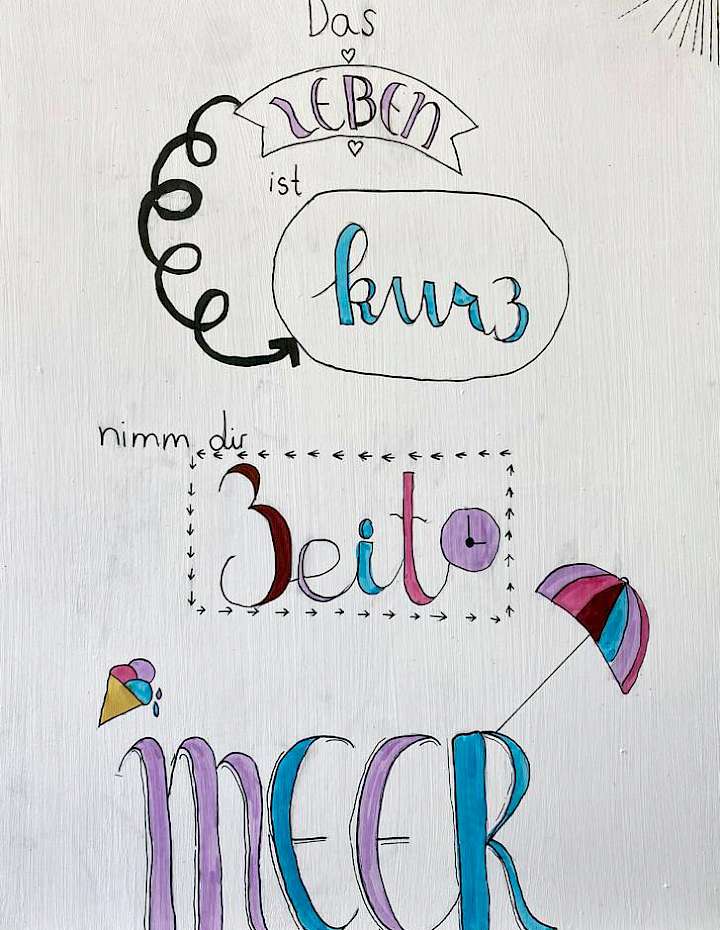 Mit verschiedenen Stiften und Brushpens lernen wir spannende Schriften entwerfen und malen damit coole Buchstaben, Wörter und Sprüche. Auch Stempeln, lustige Drucktechniken wie z.B. Gelliprint, Dekorationen, fantasievolle Muster und Verzierungen kommen in dem Kurs vor.