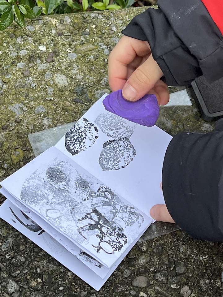 Du arbeitest sowohl draussen als auch im Musée Visionnaire, wo du dich von der Ausstellung „Listed Lives“ inspirieren lässt. Dabei wirst du selbst kreativ: Du gestaltest kleine Bücher, Comics, zeichnest, stempelst oder bemalst sogar Kaugummis.